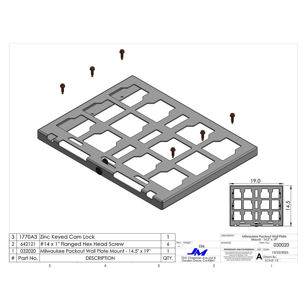 Milwaukee Packout Wall Plate Mount – 14.5″ x 19″ – 030020